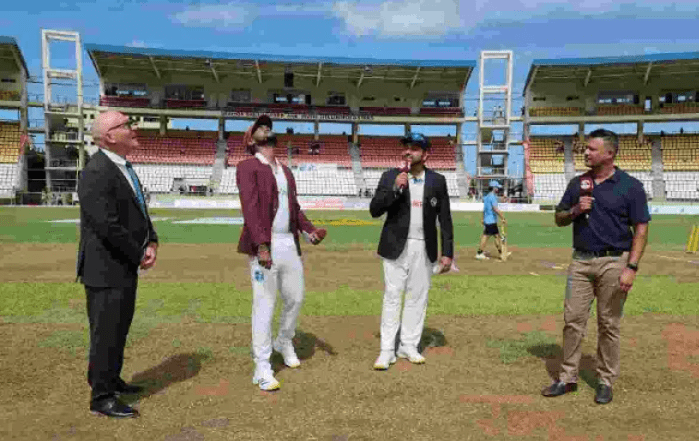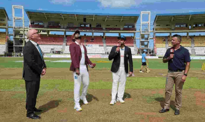 ഇന്ത്യയ്ക്കെതിരായ ആദ്യ ടെസ്റ്റിൽ ടോസ് നേടിയ വെസ്റ്റ് ഇൻഡീസ് ക്യാപ്റ്റൻ ക്രെയ്ഗ് ബ്രാത്വെയ്റ്റ് ബാറ്റിംഗ് തിരഞ്ഞെടുത്തു. 21 കാരനായ ഇടംകൈയ്യൻ ഓപ്പണർ യശസ്വി ജയ്സ്വാളിനും വിക്കറ്റ് കീപ്പർ ബാറ്റർ ഇഷാൻ കിഷനും ഇന്ത്യ അരങ്ങേറ്റ തൊപ്പികൾ കൈമാറി, പ്രാദേശിക താരം അലിക്ക് അത്നാസെ ഹോം ടീമിനായി തന്റെ കന്നി ടെസ്റ്റ് കളിക്കും.