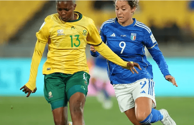ബുധനാഴ്ച നടന്ന ഫിഫ വനിതാ ലോകകപ്പിൽ ഇറ്റലിക്കെതിരെ ചരിത്രപരമായ വിജയത്തോടെ ദക്ഷിണാഫ്രിക്ക അവസാന 16-ാം സ്ഥാനത്തെത്തി. രണ്ടിനെതിരെ മൂന്ന് ഗോളുകൾക്കാണ് വിജയം. ആദ്യ പകുതിയിൽ രണ്ട് ടീമുകളും ഓരോ ഗോൾ വിത്തം നേടിയ ശേഷം രണ്ടാം പകുതിയിൽ ദക്ഷിണാഫ്രിക്ക മികച്ച പ്രകടനം നടത്തി.