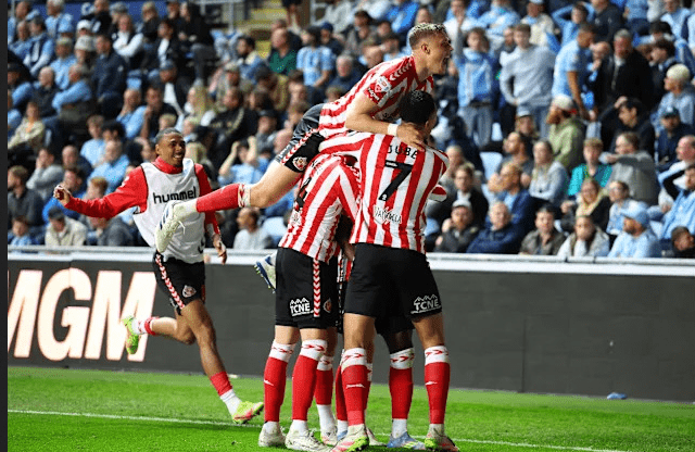 വെള്ളിയാഴ്ച രാത്രി നടന്ന ചാമ്പ്യൻഷിപ്പ് പ്ലേ-ഓഫ് സെമിഫൈനൽ ആദ്യ പാദത്തിൽ, സൺഡർലാൻഡ് കോവെൻട്രി സിറ്റിയെ 2-1 ന് പരാജയപ്പെടുത്തി. കോവെൻട്രി ബിൽഡിംഗ് സൊസൈറ്റി അരീനയിൽ നടന്ന മത്സരത്തിൽ, 88-ാം മിനിറ്റിൽ എലിയേസർ മയെൻഡ വിജയ ഗോൾ നേടി, രണ്ടാം പാദത്തിന് മുമ്പ് സൺഡർലാൻഡിന് ലീഡ് നൽകി.