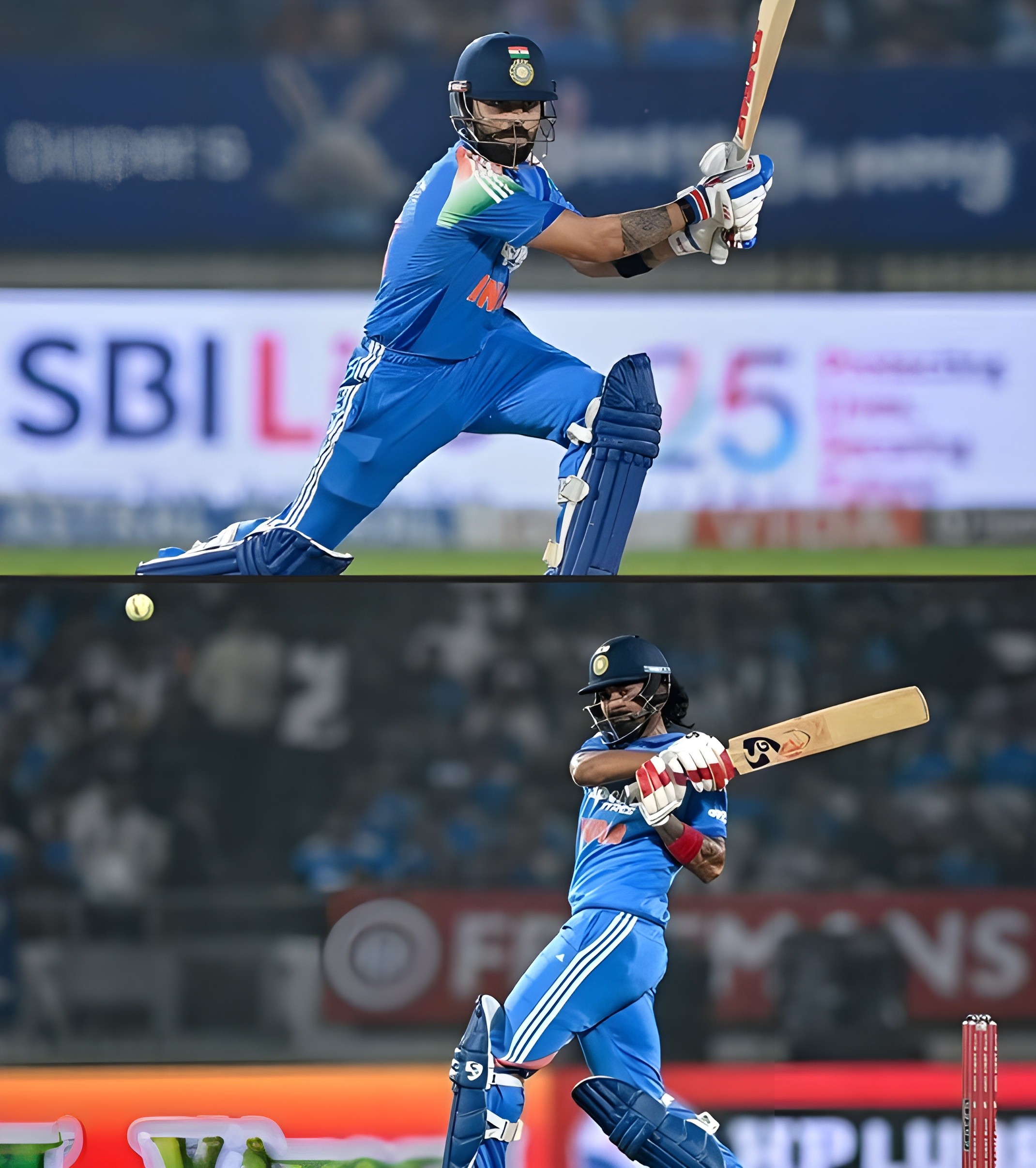 ഓപ്പണർമാരായ രോഹിത് ശർമ്മയും ശുഭ്മാൻ ഗില്ലും ആദ്യ വിക്കറ്റിൽ 39 റൺസ് കൂട്ടിച്ചേർത്തു. രോഹിത് 26 റൺസ് നേടിയ ശേഷം പുറത്തായി, തുടർന്ന് വിരാട് കോഹ്‌ലി ഗില്ലിനൊപ്പം ചേർന്ന് ചേസിന്റെ നിയന്ത്രണം ഏറ്റെടുത്തു. ഇരുവരും ചേർന്ന് ഇന്ത്യയെ 100 റൺസ് കടത്തിവിട്ടു, എന്നാൽ സ്കോർ 157 ൽ എത്തിയപ്പോൾ ഗിൽ 56 റൺസിന് പുറത്തായി. കോഹ്‌ലി പൂർണ്ണ നിയന്ത്രണത്തിലാണെന്ന് കാണുകയും ആത്മവിശ്വാസത്തോടെയും സമയനിഷ്ഠയോടെയും കളിച്ച് സെഞ്ച്വറിയുടെ അടുത്തേക്ക് സുഗമമായി നീങ്ങുകയും ചെയ്തു. എന്നിരുന്നാലും, എട്ട് ബൗണ്ടറികളും ഒരു സിക്സറും ഉൾപ്പെടുന്ന മികച്ച ഇന്നിംഗ്സിന് ശേഷം 93 റൺസിന് പുറത്തായി, അദ്ദേഹം നാഴികക്കല്ല് കടക്കാതെ നിന്നു.