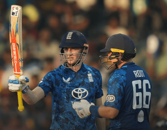 ഇംഗ്ലണ്ടിനായി ഹാരി ബ്രൂക്ക് 66 പന്തിൽ നിന്ന് 9 സിക്സറുകളും 11 ഫോറുകളും ഉൾപ്പെടെ 136 റൺസ് നേടി മികച്ച പ്രകടനം കാഴ്ചവച്ചു. ജോ റൂട്ട് അദ്ദേഹത്തിന് ഉറച്ച പിന്തുണ നൽകി, 111 റൺസുമായി പുറത്താകാതെ നിന്നു. ഇരുവരുടെയും കൂട്ടുകെട്ട് ഇംഗ്ലണ്ടിന് മികച്ച സ്കോർ പടുത്തുയർത്താൻ സഹായിച്ചു, അത് സന്ദർശകർക്ക് വളരെ വലുതാണെന്ന് തെളിഞ്ഞു.