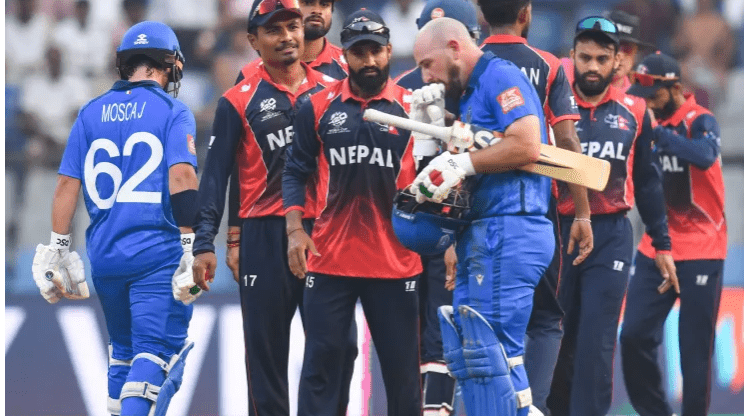 നേരത്തെ, ഇറ്റലി നേപ്പാളിനെ 19.3 ഓവറിൽ 123 റൺസിന് പുറത്താക്കി, ക്രിഷൻ കലുഗമഗെ മൂന്ന് പ്രധാന വിക്കറ്റുകൾ വീഴ്ത്തി. രോഹിത് പൗഡൽ, ആസിഫ് ഷെയ്ക്ക്, ദിപേന്ദ്ര സിംഗ് ഐറി എന്നിവരുടെ കൂട്ടുകെട്ടുകളിലൂടെ നേപ്പാൾ ചെറിയ ചെറുത്തുനിൽപ്പ് കാഴ്ചവച്ചു, പക്ഷേ പതിവ് വിക്കറ്റുകൾ അവരുടെ പുരോഗതിയെ തടഞ്ഞു. 100 റൺസ് കടന്നതിനുശേഷം, നേപ്പാളിന്റെ ഇന്നിംഗ്സ് തകർന്നു, ഇറ്റലിയുടെ അവിസ്മരണീയവും ചരിത്രപരവുമായ വിജയം ഉറപ്പാക്കി.