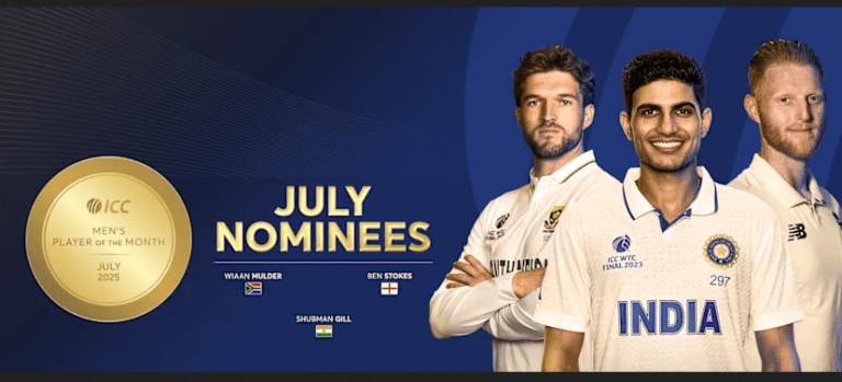 ശുബ്മാൻ ഗിൽ, ബെൻ സ്റ്റോക്സ്, വിയാൻ മുൾഡർ എന്നിവരെ ജൂലൈയിലെ ഐസിസി പുരുഷ പ്ലെയർ ഓഫ് ദ മന്ത് -നായി നാമനിർദ്ദേശം ചെയ്തു