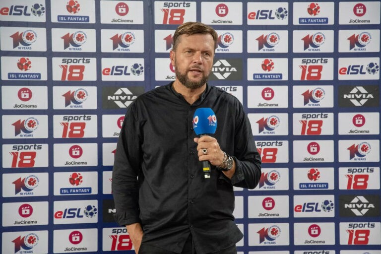 വ്യാഴാഴ്ച മുംബൈയിലെ മുംബൈ ഫുട്ബോൾ അരീനയിൽ നടന്ന ഇന്ത്യൻ സൂപ്പർ ലീഗിൽ പഞ്ചാബ് എഫ്സിക്കെതിരെ ആവേശകരമായ തിരിച്ചുവരവ് നടത്തിയ മുംബൈ സിറ്റി എഫ്സി ഹെഡ് കോച്ച് ഡെസ് ബക്കിംഗ്ഹാം...