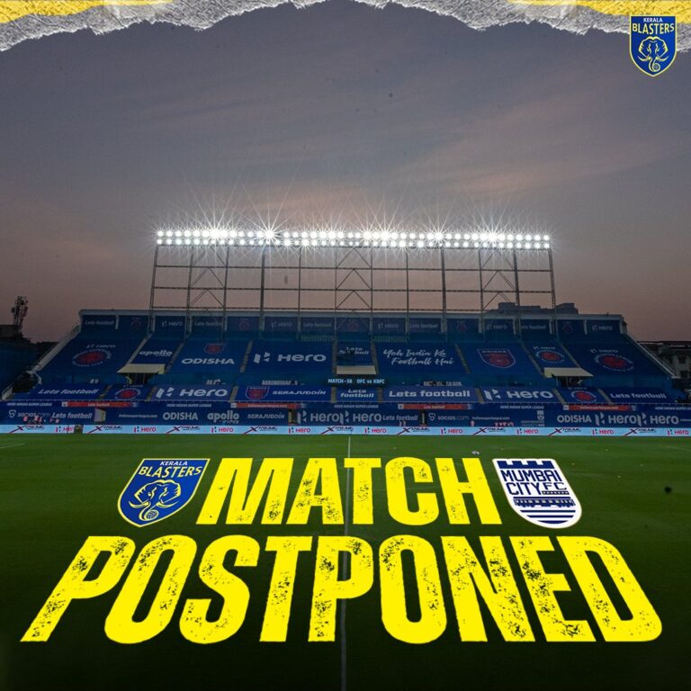 ഇന്ത്യൻ സൂപ്പർ ലീഗ് (ഐഎസ്എൽ) കേരള ബ്ലാസ്റ്റേഴ്സ് എഫ്സിയും മുംബൈ സിറ്റി എഫ്സിയും തമ്മിലുള്ള 2021-22 സീസണിലെ 62-ാം മത്സരം ഇന്നലെ നടക്കാന് ഇരുന്നിരുന്നു.വാസ്കോയിലെ തിലക് മൈതാന സ്റ്റേഡിയത്തിൽ...