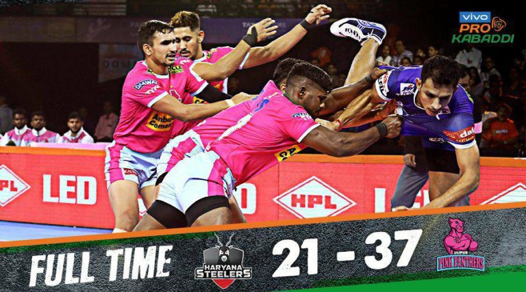 പ്രൊ കബഡി ലീഗിലെ ഏഴാം സീസണിൽ പരാജയമറിയാതെ ജയ്പൂർ. ഇന്നലെ നടന്ന മത്സരത്തിൽ അവർ ഹരിയാന സ്റ്റീലേഴ്സിനെ 37-21 എന്ന സ്കോറിന് തോൽപ്പിച്ചു. കളിച്ച മൂന്ന് മത്സരങ്ങളും ജയിച്ച...